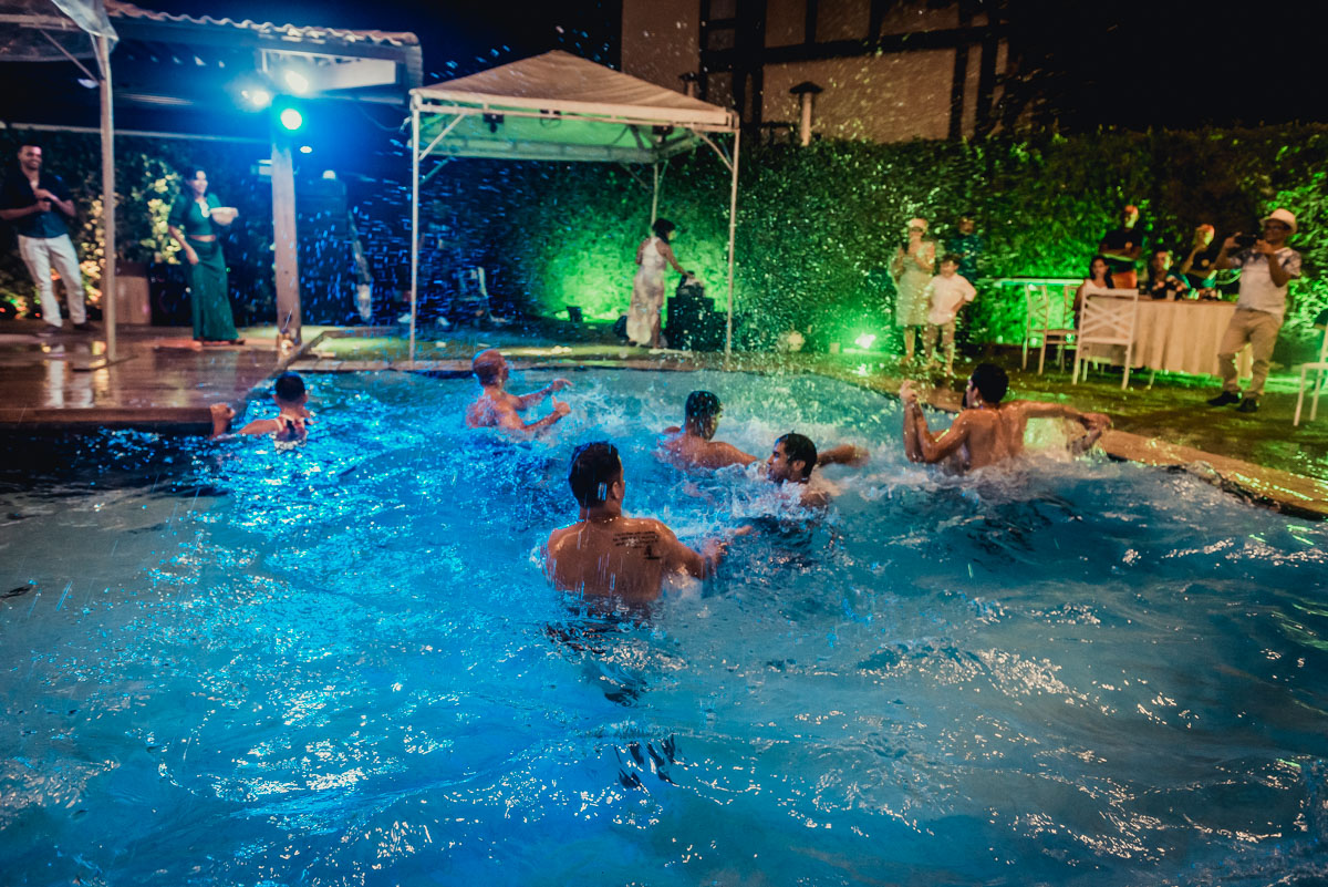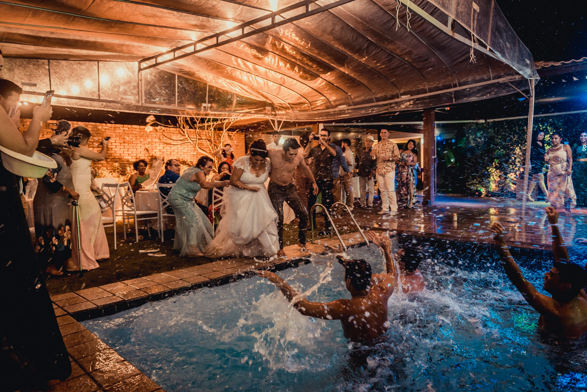 vou mergulhar na piscina em minha festa de casamento